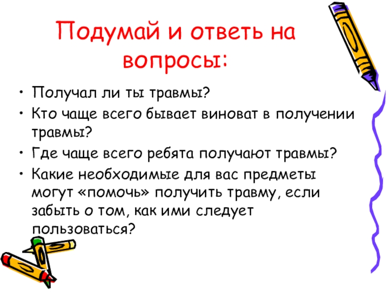 Какие необходимые для вас предметы могут «помочь» получить травму, если забыть о том, как ими следует пользоваться?