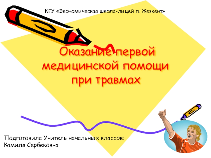 Слайд 1 Оказание первой медицинской помощи при травмах