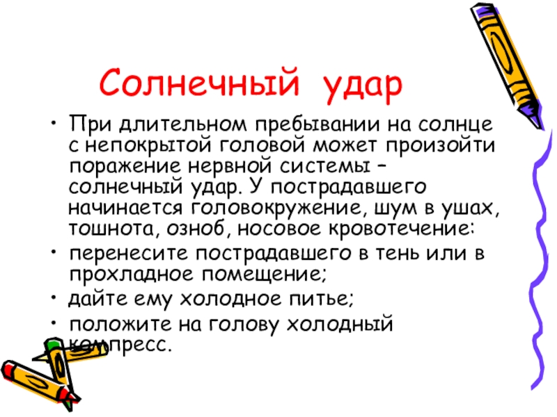 Слайд 14Солнечный удар