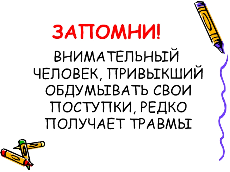 ВНИМАТЕЛЬНЫЙ ЧЕЛОВЕК, ПРИВЫКШИЙ ОБДУМЫВАТЬ СВОИ ПОСТУПКИ, РЕДКО ПОЛУЧАЕТ ТРАВМЫ