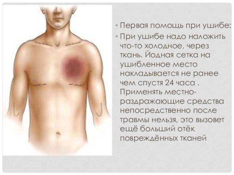 Слайд 3Первая помощь при ушибе: