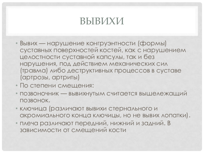 Вывих — нарушение конгруэнтности (формы) суставных поверхностей костей, как с нарушением