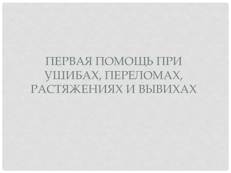 Слайд 1Первая помощь при УШИБах, ПЕРЕЛОМах, РАСТЯЖЕНИях И ВЫВИХах