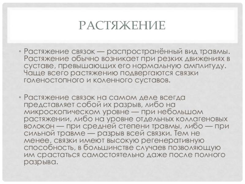 Растяжение связок — распространённый вид травмы. Растяжение обычно возникает при резких