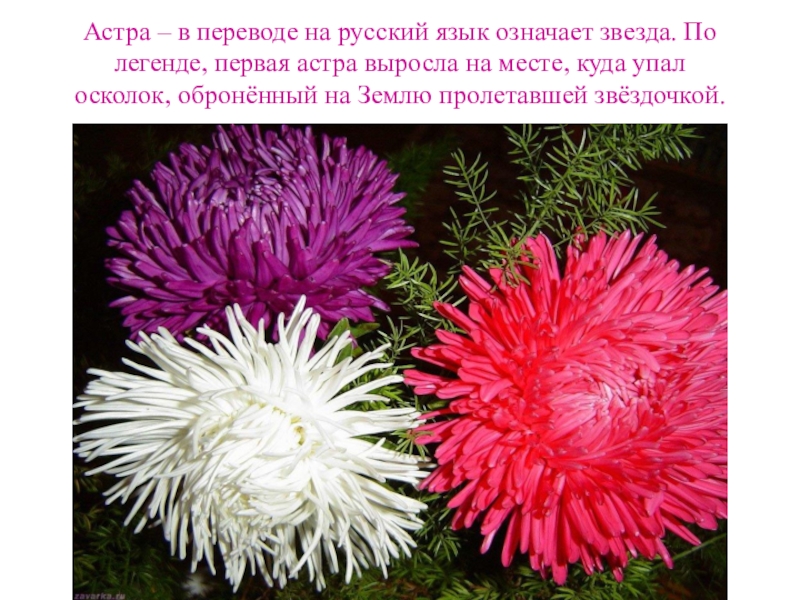 Слайд 7Астра – в переводе на русский язык означает звезда. По легенде,