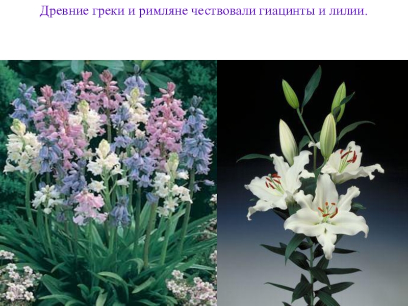 Слайд 13Древние греки и римляне чествовали гиацинты и лилии.