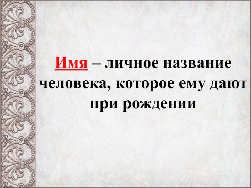 Имя – личное название человека, которое ему дают при рождении