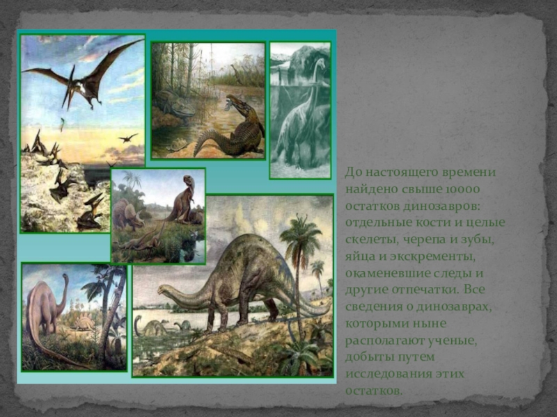Слайд 3До настоящего времени найдено свыше 10000 остатков динозавров: отдельные кости и