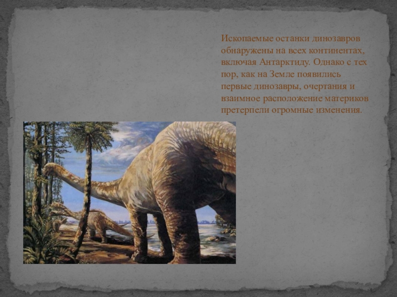Слайд 4Ископаемые останки динозавров обнаружены на всех континентах, включая Антарктиду. Однако с