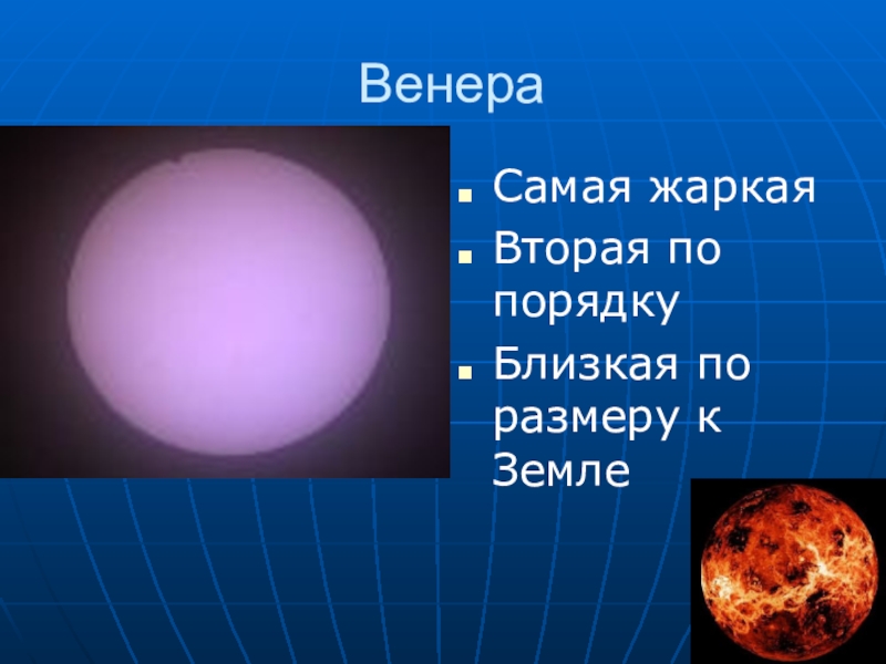 ВенераСамая жаркая Вторая по порядкуБлизкая по размеру к Земле