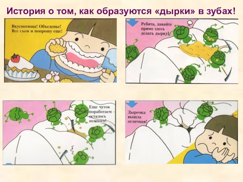 Слайд 7История о том, как образуются «дырки» в зубах!
