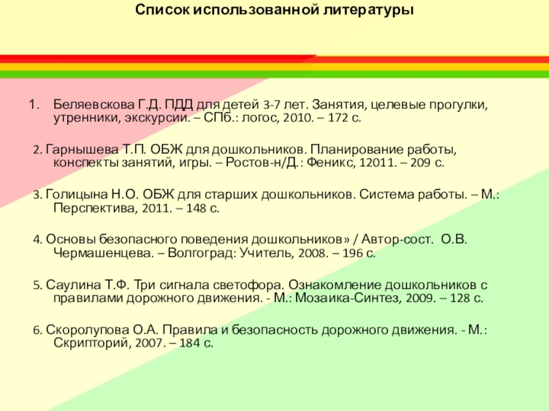 5. Саулина Т.Ф. Три сигнала светофора. Ознакомление дошкольников с правилами дорожного движения. - М.: Мозаика-Синтез, 2009. – 128 с.