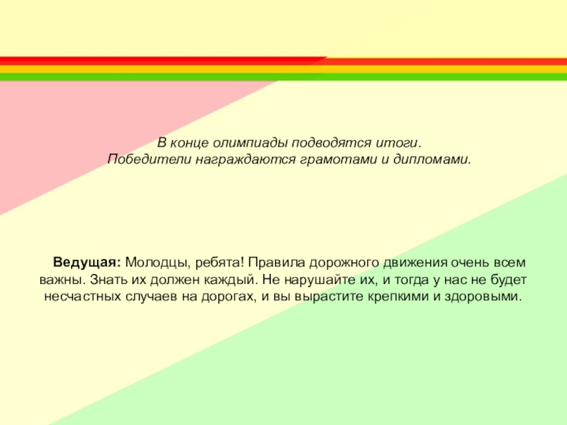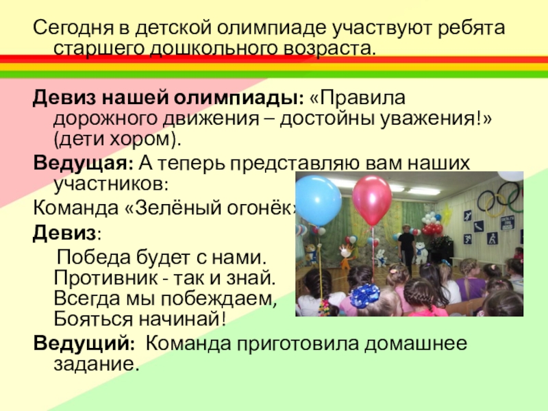олимпиады: «Правила дорожного движения – достойны уважения!» (дети хором).