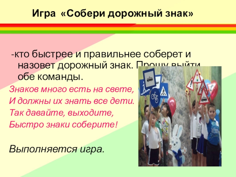 3. Игра «Собери дорожный знак» -кто быстрее и правильнее соберет и назовет дорожный знак – победителю 1 балл