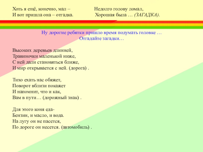 И вот пришла она – отгадка. Хорошая была … (ЗАГАДКА).
