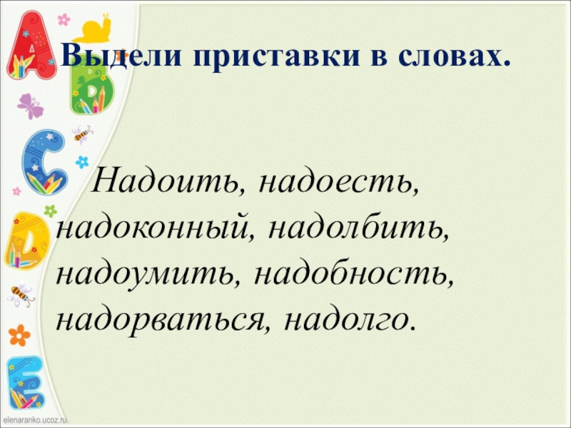 Надоить, надоесть, надоконный, надолбить,
