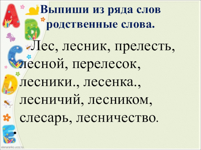 Слайд 14Выпиши из ряда слов родственные слова.
