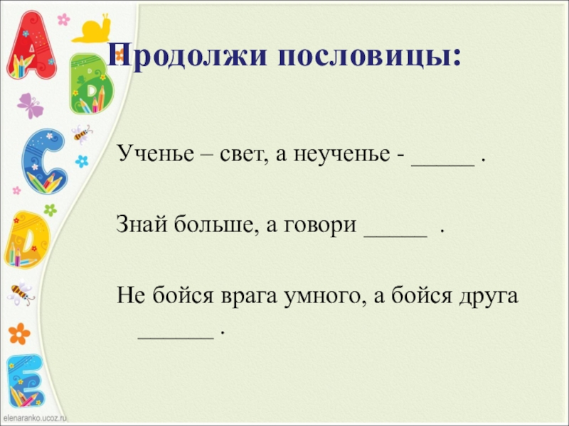 Слайд 2Продолжи пословицы: