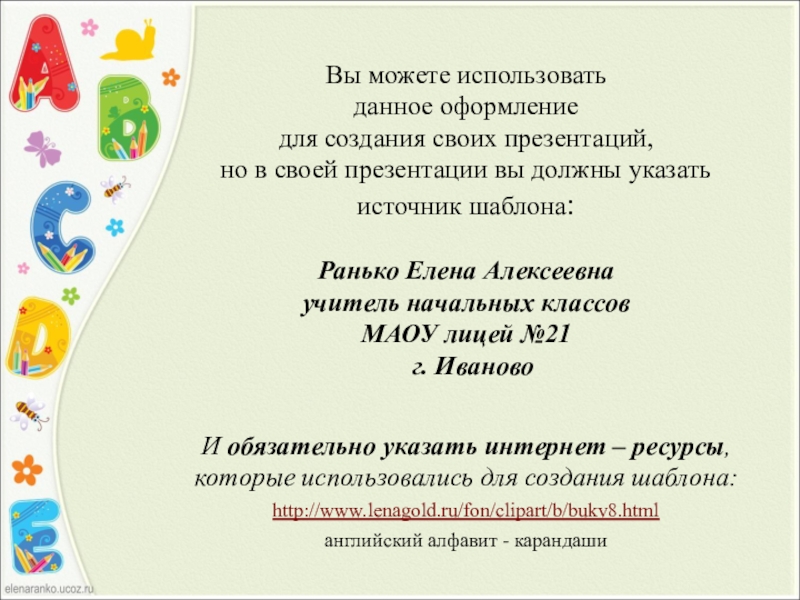 своей презентации вы должны указать