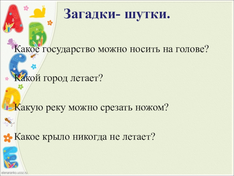 Слайд 6Загадки- шутки.