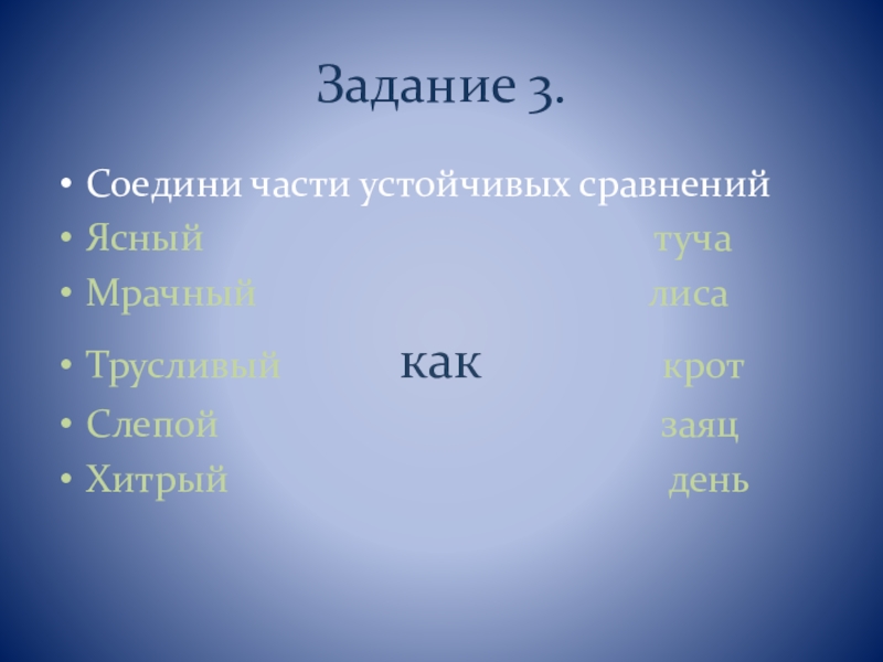 Задание 3.Соедини части устойчивых сравненийЯсный