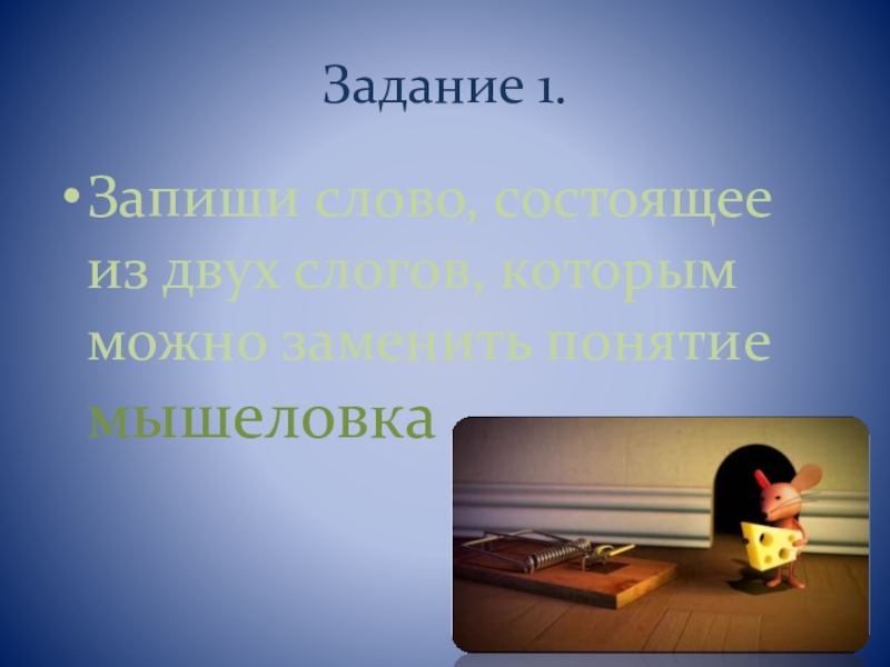 Задание 1.Запиши слово, состоящее из двух слогов, которым можно заменить понятие мышеловка