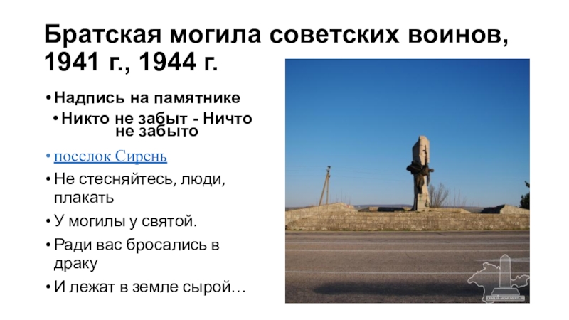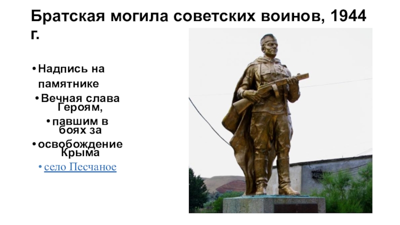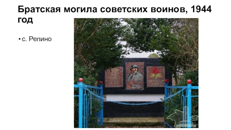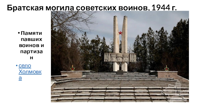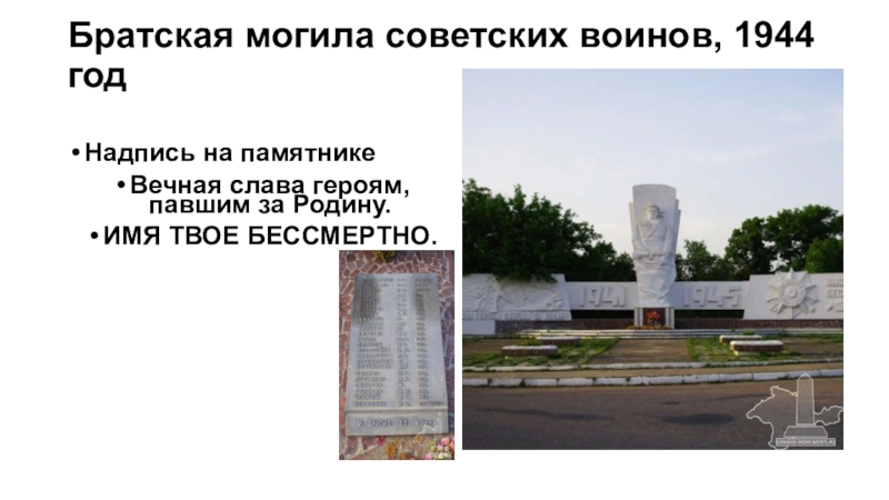 Слайд 14Братская могила советских воинов, 1941 г., 1944 г.