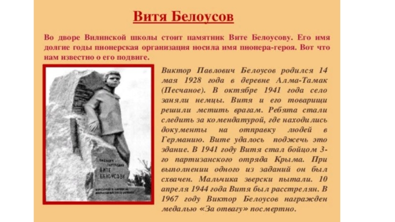 Вечная слава партизанам сражавшимся на бахчисарайской земле 1941-1944 гг.