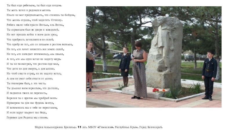 Мария Александровна Бриленко. 11 лет. МБОУ «Гимназия». Республика Крым. Город Бахчисарай.