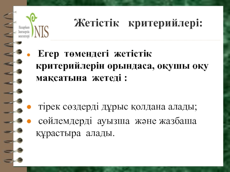 Оқыту мақсаттары – оқу бағдарламасына сәйкес пәндерді оқу барысында білу, түсіну және дағдыға жету бойынша күтілетін нәтижелерді қалыптастыратын пайымдаулар.