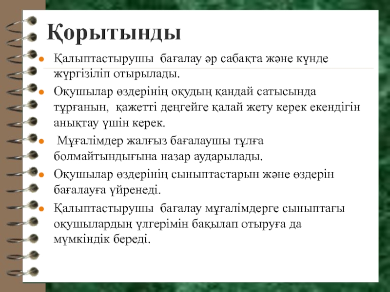 Қалыптастырушы бағалаудың тиімді жолдарын таныстыру.