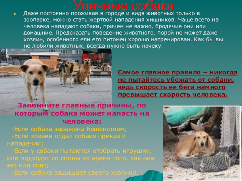 Самое главное правило – никогда не пытайтесь убежать от собаки, ведь скорость ее бега намного превышает скорость человека.
