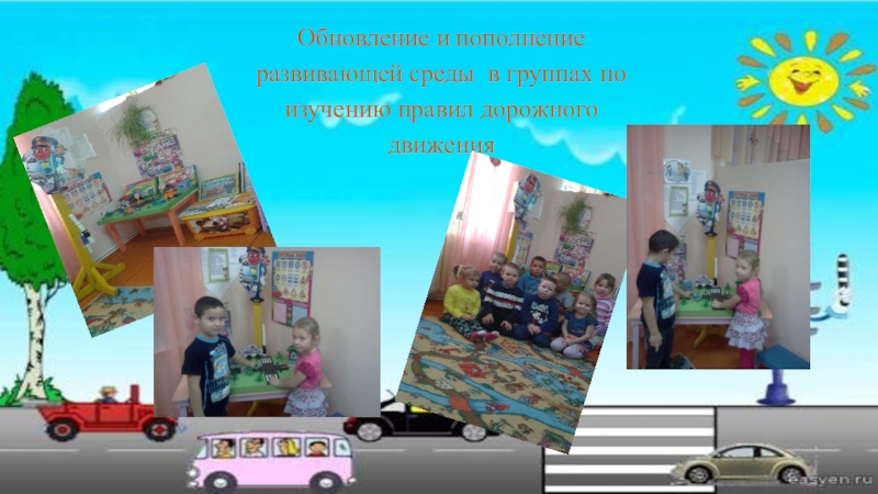 Слайд 3Обновление и пополнение развивающей среды  в группах по изучению правил дорожного