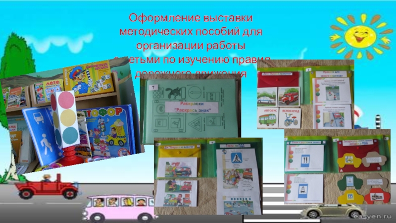 Оформление выставки методических пособий для организации работы с детьми по изучению правил дорожного движения