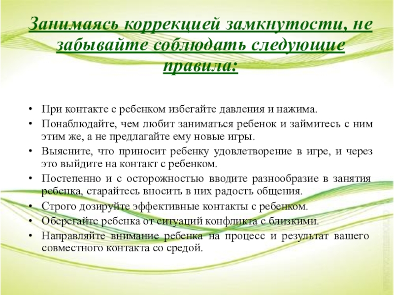Слайд 11Занимаясь коррекцией замкнутости, не забывайте соблюдать следующие правила:
