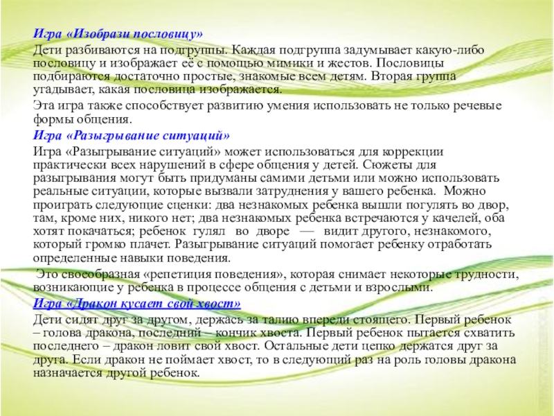 Эта игра также способствует развитию умения использовать не только речевые формы общения.