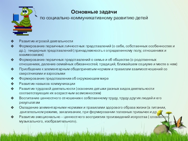 Слайд 4Основные задачи по социально-коммуникативному развитию детей