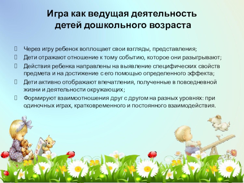 Слайд 7Игра как ведущая деятельность детей дошкольного возраста