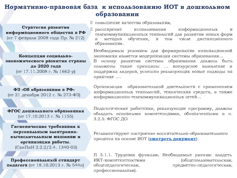 Нормативно-правовая база к использованию ИОТ в дошкольном образовании