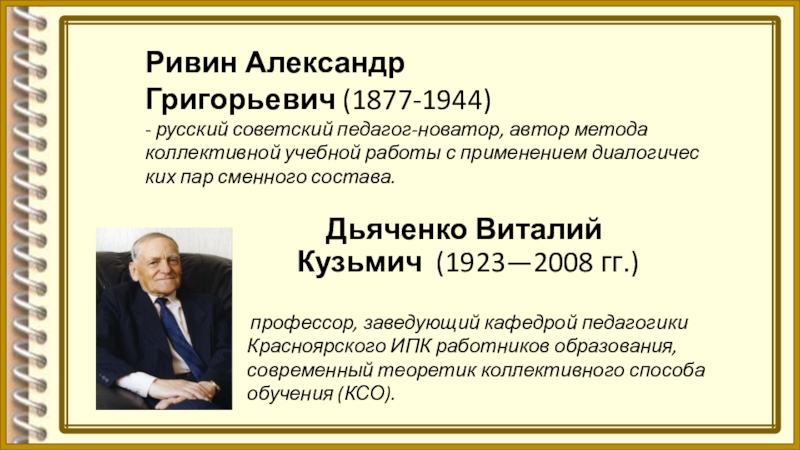 - русский советский педагог-новатор, автор метода коллективной учебной работы с применением диалогических пар сменного состава.