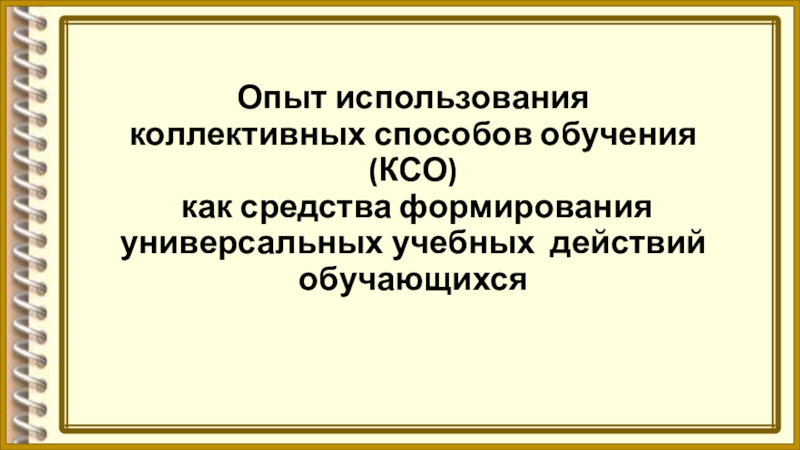 Тема: «Коллективные способы обучения» Отличие КСО от ГСО.