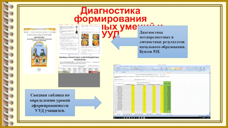 Сводная таблица по определению уровня сформированности УУД учащихся.