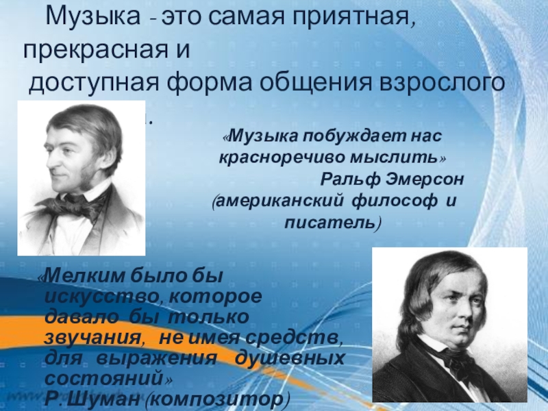 «Мелким было бы искусство, которое давало бы только звучания, не имея средств, для выражения душевных состояний» Р. Шуман (композитор)
