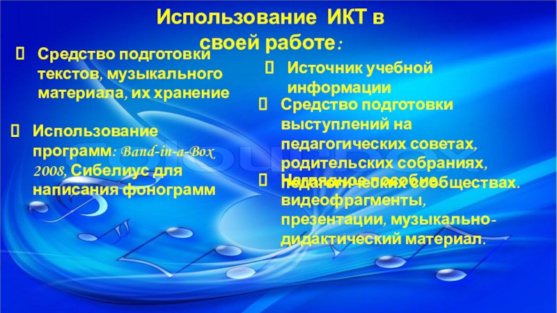 Использование программ: Band-in-a-Box 2008, Сибелиус для написания фонограмм