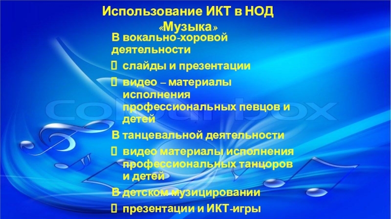 Наглядное пособие: видеофрагменты, презентации, музыкально- дидактический материал.