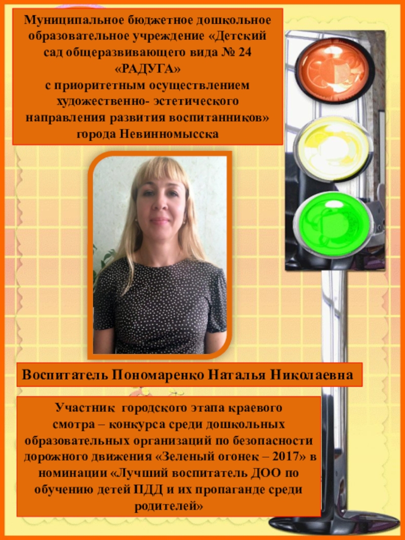 смотра – конкурса среди дошкольных образовательных организаций по безопасности дорожного движения «Зеленый огонек – 2017» в номинации «Лучший воспитатель ДОО по обучению детей ПДД и их пропаганде среди родителей»