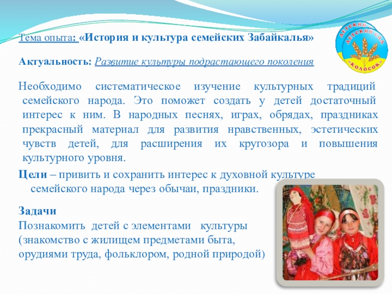 Познакомить детей с элементами культуры (знакомство с жилищем предметами быта,