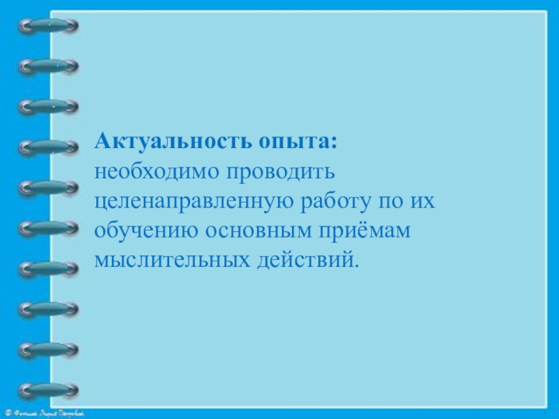необходимо проводить целенаправленную работу по их обучению основным приёмам мыслительных