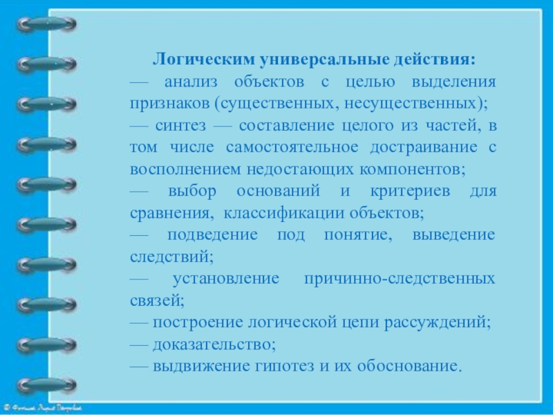 Слайд 4 Логическим универсальные действия: