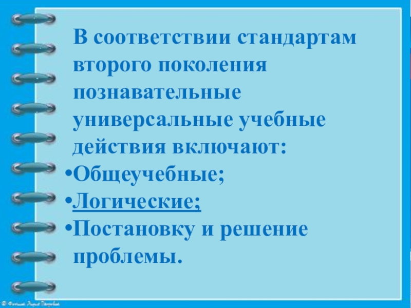 Слайд 3В соответствии стандартам второго поколения познавательные универсальные учебные действия включают: